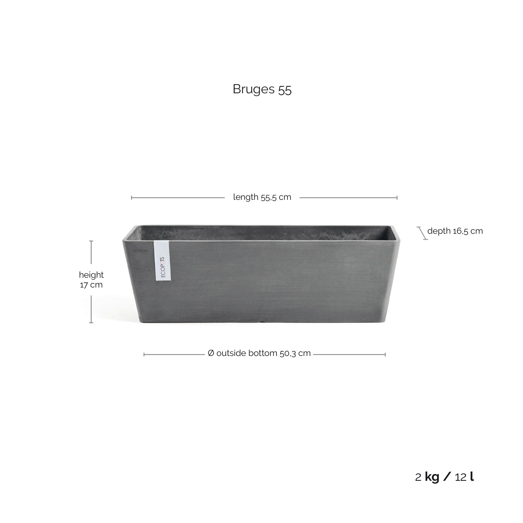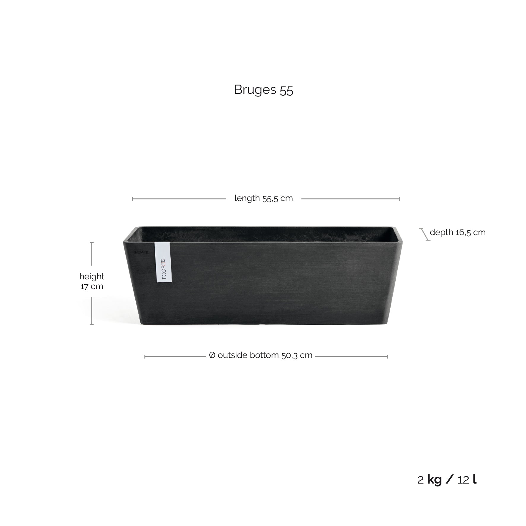 ECOPOTS Bruges 55 cm lengd - blómaker