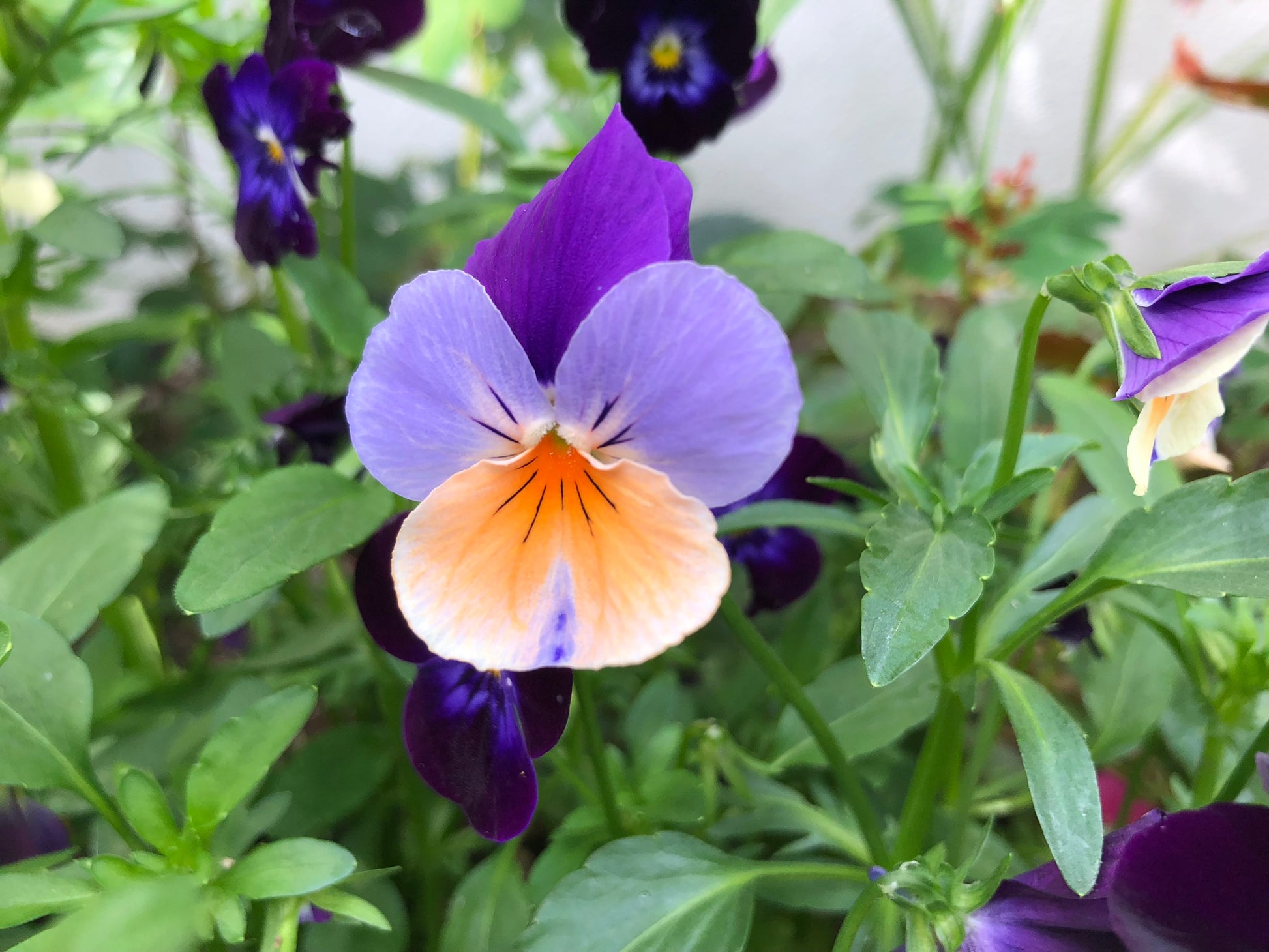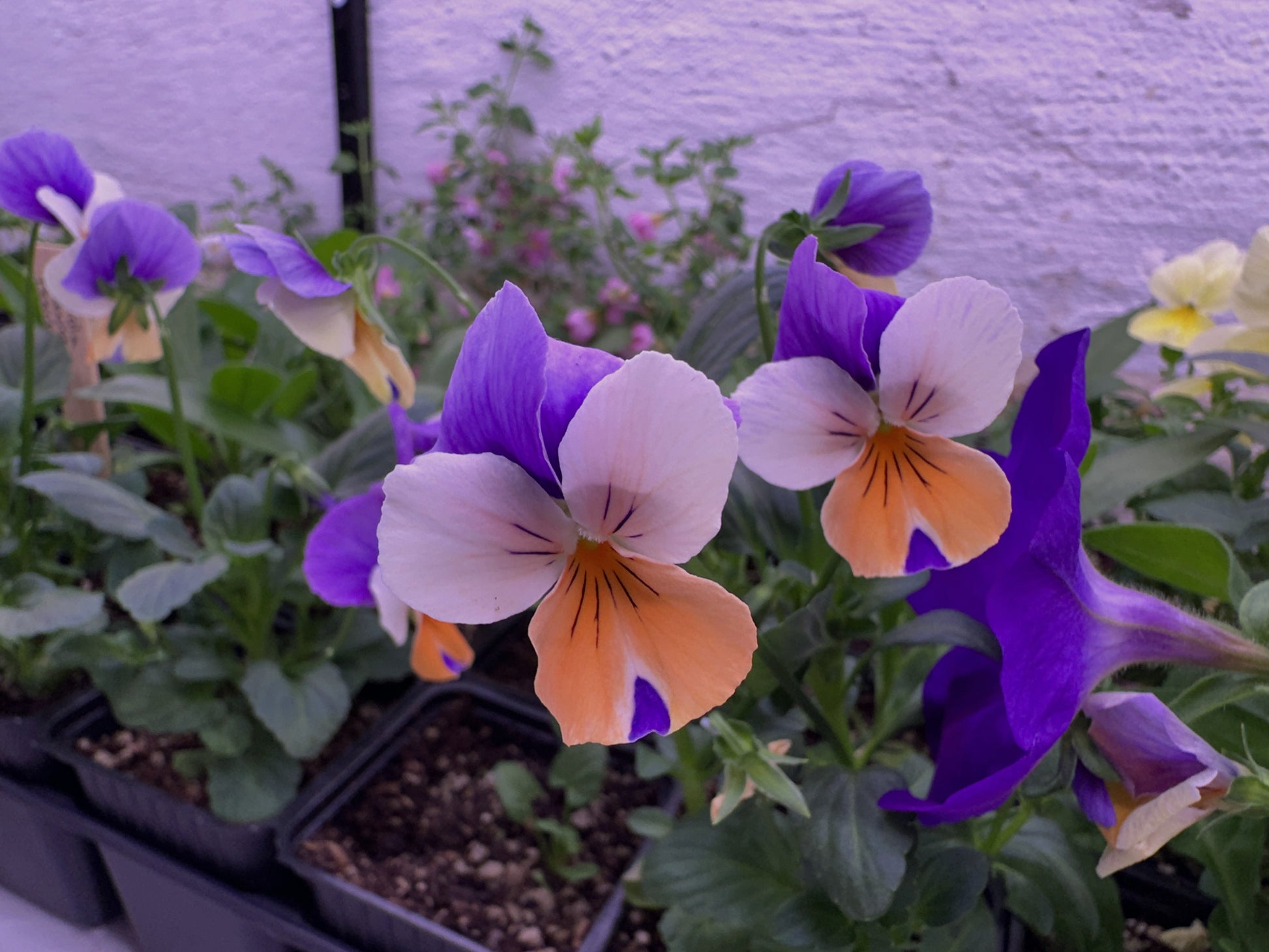 'Callisto F1 Peach Duet' er fjóluafbrigði sem blómstrar þrílitum blómum, fjólubláum, hvítum og ferskjubleikum. Callisto serían einkennist af þéttum, blómsælum plöntum. Fjólur eru sumarblóm sem henta vel í ker og út í beð.